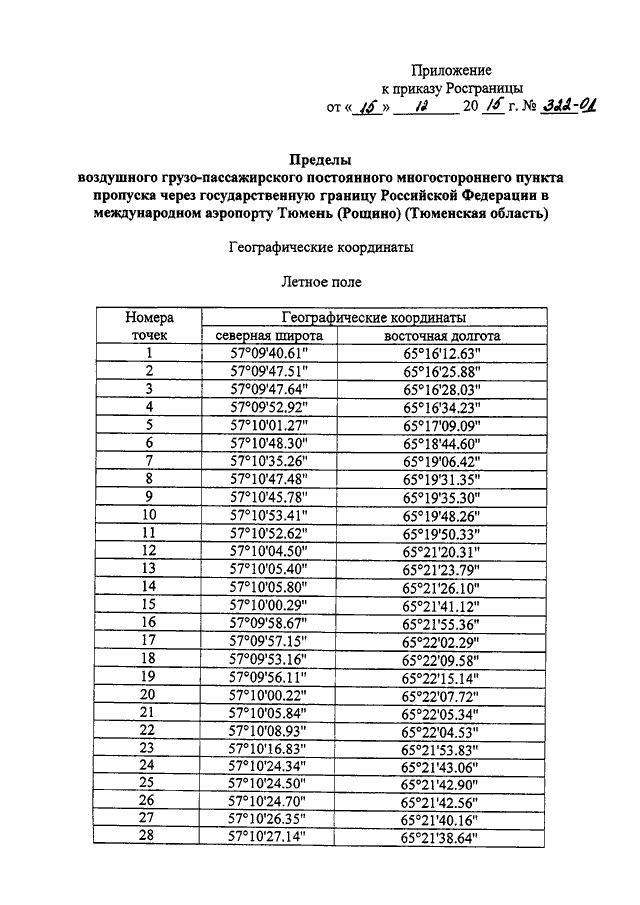 ПРИКАЗ Росграницы от 15.12.2015 N 322-ОД