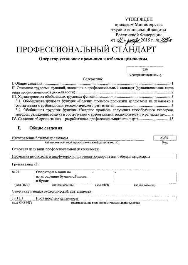"ОБ УТВЕРЖДЕНИИ ПРОФЕССИОНАЛЬНОГО СТАНДАРТА "ОПЕРАТОР УСТАНОВОК ПРОМЫВКИ И ОТБЕЛКИ ЦЕЛЛЮЛОЗЫ"