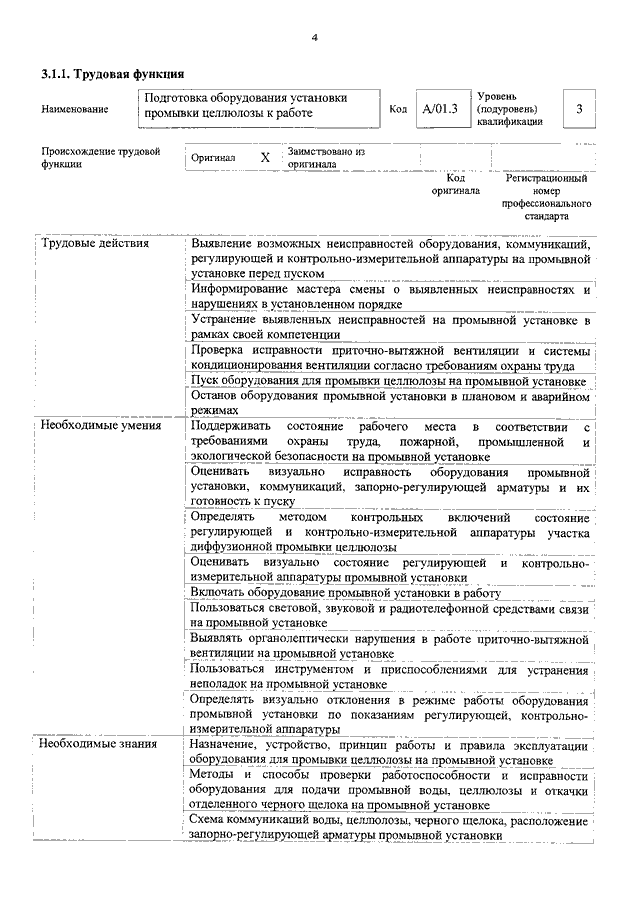 "ОБ УТВЕРЖДЕНИИ ПРОФЕССИОНАЛЬНОГО СТАНДАРТА "ОПЕРАТОР УСТАНОВОК ПРОМЫВКИ И ОТБЕЛКИ ЦЕЛЛЮЛОЗЫ"