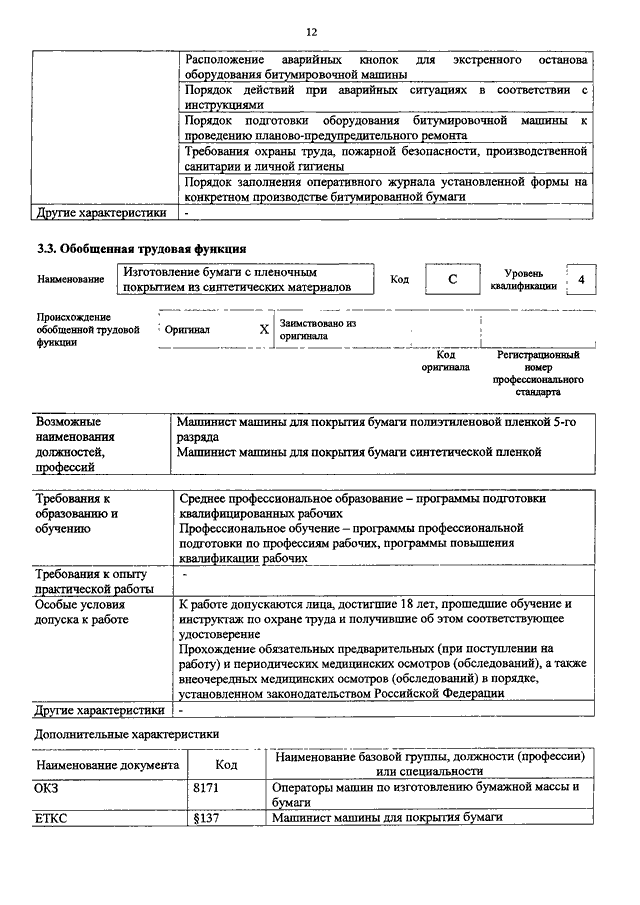 "ОБ УТВЕРЖДЕНИИ ПРОФЕССИОНАЛЬНОГО СТАНДАРТА "МАШИНИСТ УСТАНОВОК ПО ПРОИЗВОДСТВУ ИЗДЕЛИЙ ИЗ БУМАГИ И КАРТОНА"