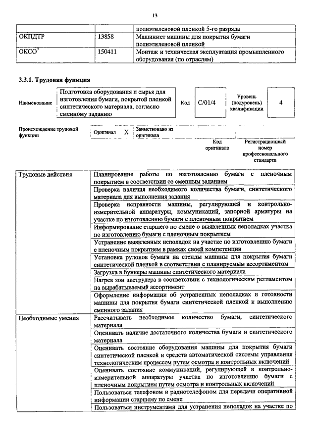 "ОБ УТВЕРЖДЕНИИ ПРОФЕССИОНАЛЬНОГО СТАНДАРТА "МАШИНИСТ УСТАНОВОК ПО ПРОИЗВОДСТВУ ИЗДЕЛИЙ ИЗ БУМАГИ И КАРТОНА"