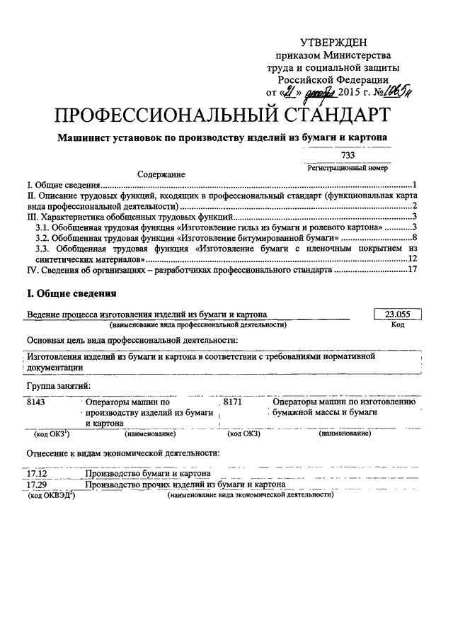 "ОБ УТВЕРЖДЕНИИ ПРОФЕССИОНАЛЬНОГО СТАНДАРТА "МАШИНИСТ УСТАНОВОК ПО ПРОИЗВОДСТВУ ИЗДЕЛИЙ ИЗ БУМАГИ И КАРТОНА"