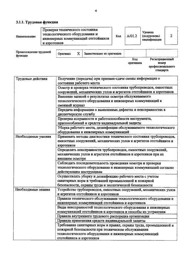 "ОБ УТВЕРЖДЕНИИ ПРОФЕССИОНАЛЬНОГО СТАНДАРТА "ОПЕРАТОР НА ОТСТОЙНИКАХ И АЭРОТЕНКАХ СИСТЕМ ВОДООТВЕДЕНИЯ"