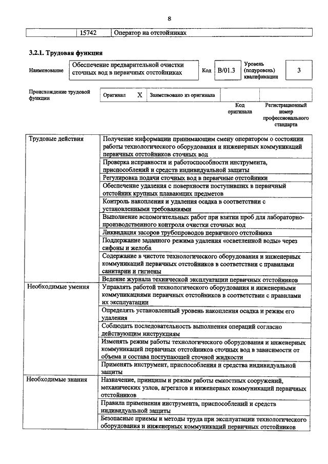 "ОБ УТВЕРЖДЕНИИ ПРОФЕССИОНАЛЬНОГО СТАНДАРТА "ОПЕРАТОР НА ОТСТОЙНИКАХ И АЭРОТЕНКАХ СИСТЕМ ВОДООТВЕДЕНИЯ"