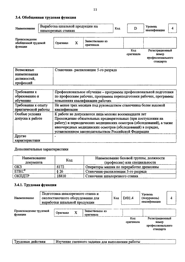 "ОБ УТВЕРЖДЕНИИ ПРОФЕССИОНАЛЬНОГО СТАНДАРТА "СТАНОЧНИК ЛЕСООБРАБАТЫВАЮЩЕГО ОБОРУДОВАНИЯ"
