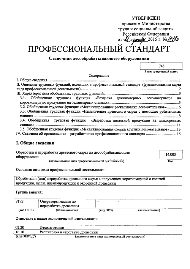 "ОБ УТВЕРЖДЕНИИ ПРОФЕССИОНАЛЬНОГО СТАНДАРТА "СТАНОЧНИК ЛЕСООБРАБАТЫВАЮЩЕГО ОБОРУДОВАНИЯ"