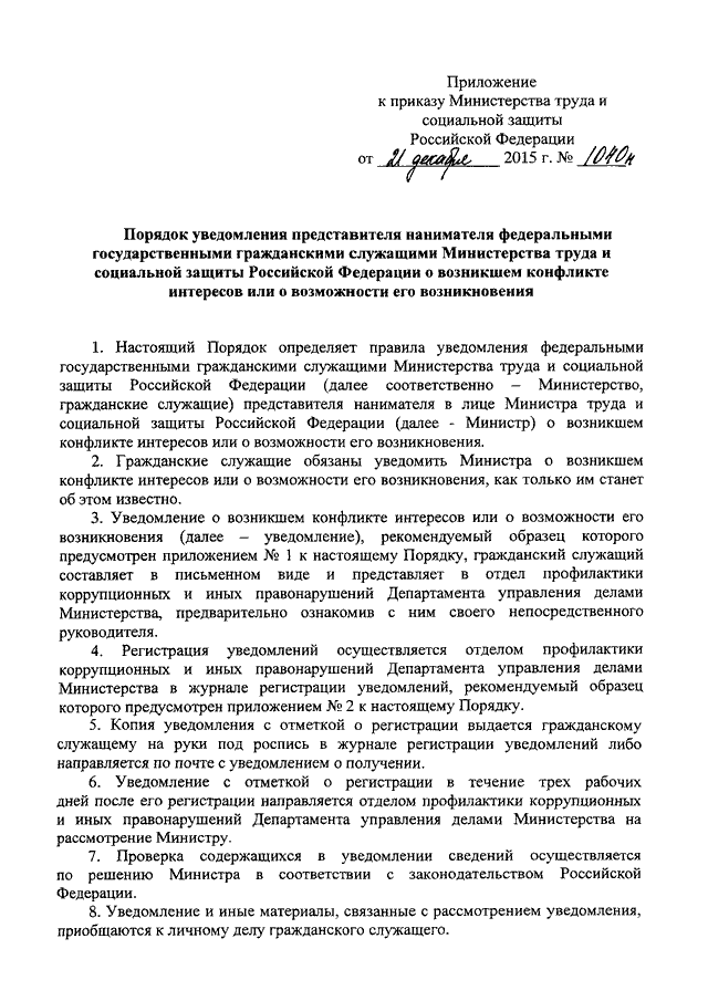 ПРИКАЗ Минтруда РФ от 21.12.2015 N 1040н