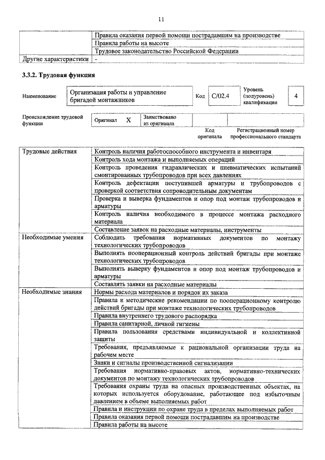 "ОБ УТВЕРЖДЕНИИ ПРОФЕССИОНАЛЬНОГО СТАНДАРТА "МОНТАЖНИК ТЕХНОЛОГИЧЕСКИХ ТРУБОПРОВОДОВ"
