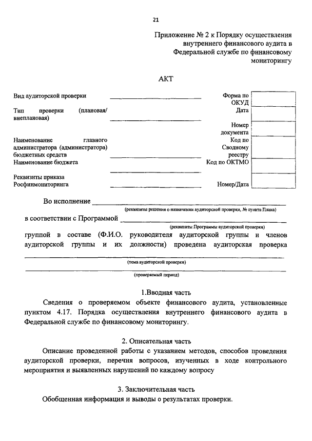 "ОБ ОСУЩЕСТВЛЕНИИ ВНУТРЕННЕГО ФИНАНСОВОГО АУДИТА В ФЕДЕРАЛЬНОЙ СЛУЖБЕ ПО ФИНАНСОВОМУ МОНИТОРИНГУ"