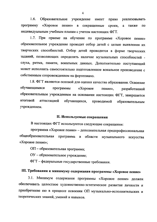 "ОБ УТВЕРЖДЕНИИ ФЕДЕРАЛЬНЫХ ГОСУДАРСТВЕННЫХ ТРЕБОВАНИЙ К МИНИМУМУ СОДЕРЖАНИЯ, СТРУКТУРЕ И УСЛОВИЯМ РЕАЛИЗАЦИИ ДОПОЛНИТЕЛЬНОЙ ПРЕДПРОФЕССИОНАЛЬНОЙ ОБЩЕОБРАЗОВАТЕЛЬНОЙ ПРОГРАММЫ В ОБЛАСТИ МУЗЫКАЛЬНОГО ИСКУССТВА "ХОРОВОЕ ПЕНИЕ" И СРОКУ ОБУЧЕНИЯ ПО ЭТОЙ ПРОГРАММЕ"