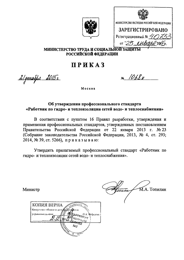 ПРИКАЗ Минтруда РФ от 21.12.2015 N 1068н