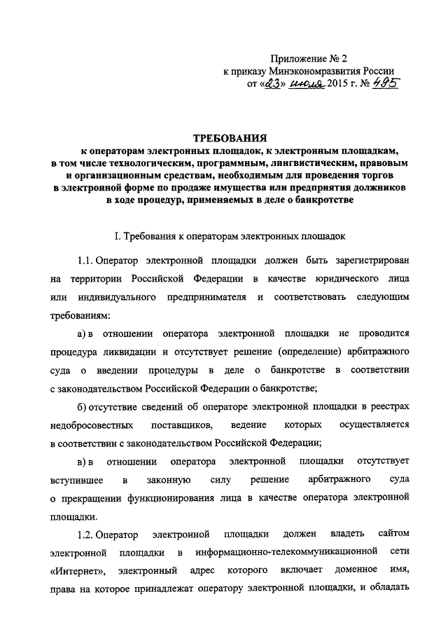 ПРИКАЗ Минэкономразвития РФ от 23.07.2015 N 495