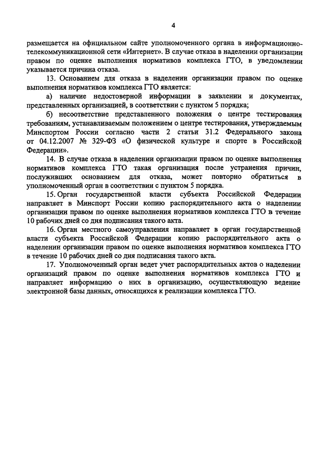 "ОБ УТВЕРЖДЕНИИ ПОРЯДКА НАДЕЛЕНИЯ ИНЫХ НЕКОММЕРЧЕСКИХ ОРГАНИЗАЦИЙ ПРАВОМ ПО ОЦЕНКЕ ВЫПОЛНЕНИЯ НОРМАТИВОВ ИСПЫТАНИЙ (ТЕСТОВ) ВСЕРОССИЙСКОГО ФИЗКУЛЬТУРНО - СПОРТИВНОГО КОМПЛЕКСА "ГОТОВ К ТРУДУ И ОБОРОНЕ" (ГТО)"