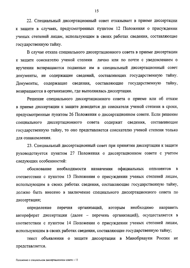 "ОБ УТВЕРЖДЕНИИ ПОЛОЖЕНИЯ О СПЕЦИАЛЬНОМ СОВЕТЕ ПО ЗАЩИТЕ ДИССЕРТАЦИЙ, СОДЕРЖАЩИХ СВЕДЕНИЯ, СОСТАВЛЯЮЩИЕ ГОСУДАРСТВЕННУЮ ТАЙНУ, НА СОИСКАНИЕ УЧЕНОЙ СТЕПЕНИ КАНДИДАТА НАУК, НА СОИСКАНИЕ УЧЕНОЙ СТЕПЕНИ ДОКТОРА НАУК"