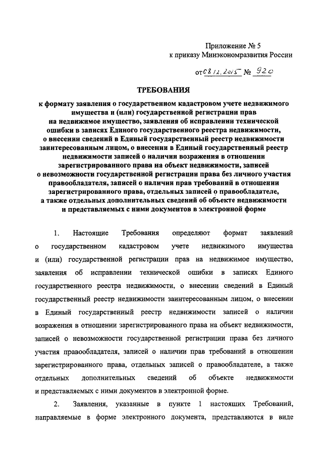"ОБ УТВЕРЖДЕНИИ ФОРМ ЗАЯВЛЕНИЯ О ГОСУДАРСТВЕННОМ КАДАСТРОВОМ УЧЕТЕ НЕДВИЖИМОГО ИМУЩЕСТВА И (ИЛИ) ГОСУДАРСТВЕННОЙ РЕГИСТРАЦИИ ПРАВ НА НЕДВИЖИМОЕ ИМУЩЕСТВО, ЗАЯВЛЕНИЯ ОБ ИСПРАВЛЕНИИ ТЕХНИЧЕСКОЙ ОШИБКИ В ЗАПИСЯХ ЕДИНОГО ГОСУДАРСТВЕННОГО РЕЕСТРА НЕДВИЖИМОСТИ, О ВНЕСЕНИИ СВЕДЕНИЙ В ЕДИНЫЙ ГОСУДАРСТВЕННЫЙ РЕЕСТР НЕДВИЖИМОСТИ ЗАИНТЕРЕСОВАННЫМ ЛИЦОМ, О ВНЕСЕНИИ В ЕДИНЫЙ ГОСУДАРСТВЕННЫЙ РЕЕСТР НЕДВИЖИМОСТИ ЗАПИСЕЙ О НАЛИЧИИ ВОЗРАЖЕНИЯ В ОТНОШЕНИИ ЗАРЕГИСТРИРОВАННОГО ПРАВА НА ОБЪЕКТ НЕДВИЖИМОСТИ, ЗАПИСЕЙ О НЕВОЗМОЖНОСТИ ГОСУДАРСТВЕННОЙ РЕГИСТРАЦИИ ПРАВА БЕЗ ЛИЧНОГО УЧАСТИЯ ПРАВООБЛАДАТЕЛЯ, ЗАПИСЕЙ О НАЛИЧИИ ПРАВ ТРЕБОВАНИЙ В ОТНОШЕНИИ ЗАРЕГИСТРИРОВАННОГО ПРАВА, ОТДЕЛЬНЫХ ЗАПИСЕЙ О ПРАВООБЛАДАТЕЛЕ, ОТДЕЛЬНЫХ ДОПОЛНИТЕЛЬНЫХ СВЕДЕНИЙ ОБ ОБЪЕКТЕ НЕДВИЖИМОСТИ, ТРЕБОВАНИЙ К ИХ ЗАПОЛНЕНИЮ, ТРЕБОВАНИЙ К ФОРМАТУ ТАКИХ ЗАЯВЛЕНИЙ И ПРЕДСТАВЛЯЕМЫХ С НИМИ ДОКУМЕНТОВ В ЭЛЕКТРОННОЙ ФОРМЕ, А ТАКЖЕ ФОРМЫ ЗАЯВЛЕНИЯ О ВНЕСЕНИИ В ЕДИНЫЙ ГОСУДАРСТВЕННЫЙ РЕЕСТР НЕДВИЖИМОСТИ СВЕДЕНИЙ О ЗЕМЕЛЬНЫХ УЧАСТКАХ И О МЕСТОПОЛОЖЕНИИ НА НИХ ЗДАНИЙ, СООРУЖЕНИЙ, ОБЪЕКТОВ НЕЗАВЕРШЕННОГО СТРОИТЕЛЬСТВА, ПОЛУЧЕННЫХ В РЕЗУЛЬТАТЕ ВЫПОЛНЕНИЯ КОМПЛЕКСНЫХ КАДАСТРОВЫХ РАБОТ"