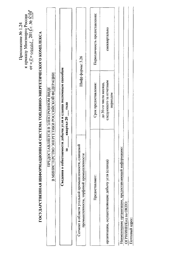 "ОБ УТВЕРЖДЕНИИ ФОРМ ПРЕДОСТАВЛЕНИЯ В ОБЯЗАТЕЛЬНОМ ПОРЯДКЕ ЮРИДИЧЕСКИМИ ЛИЦАМИ ИНФОРМАЦИИ ДЛЯ ВКЛЮЧЕНИЯ В СЕГМЕНТ В ОБЛАСТИ УГОЛЬНОЙ ПРОМЫШЛЕННОСТИ, СЛАНЦЕВОЙ ПРОМЫШЛЕННОСТИ, ТОРФЯНОЙ ПРОМЫШЛЕННОСТИ ГОСУДАРСТВЕННОЙ ИНФОРМАЦИОННОЙ СИСТЕМЫ ТОПЛИВНО - ЭНЕРГЕТИЧЕСКОГО КОМПЛЕКСА И ТРЕБОВАНИЙ К ЗАПОЛНЕНИЮ ЭТИХ ФОРМ"