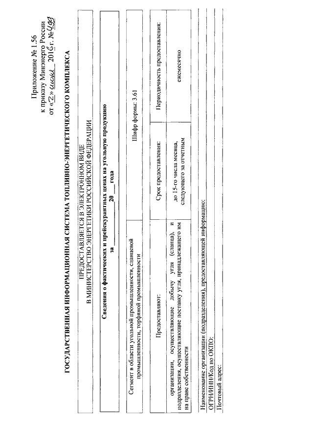 "ОБ УТВЕРЖДЕНИИ ФОРМ ПРЕДОСТАВЛЕНИЯ В ОБЯЗАТЕЛЬНОМ ПОРЯДКЕ ЮРИДИЧЕСКИМИ ЛИЦАМИ ИНФОРМАЦИИ ДЛЯ ВКЛЮЧЕНИЯ В СЕГМЕНТ В ОБЛАСТИ УГОЛЬНОЙ ПРОМЫШЛЕННОСТИ, СЛАНЦЕВОЙ ПРОМЫШЛЕННОСТИ, ТОРФЯНОЙ ПРОМЫШЛЕННОСТИ ГОСУДАРСТВЕННОЙ ИНФОРМАЦИОННОЙ СИСТЕМЫ ТОПЛИВНО - ЭНЕРГЕТИЧЕСКОГО КОМПЛЕКСА И ТРЕБОВАНИЙ К ЗАПОЛНЕНИЮ ЭТИХ ФОРМ"