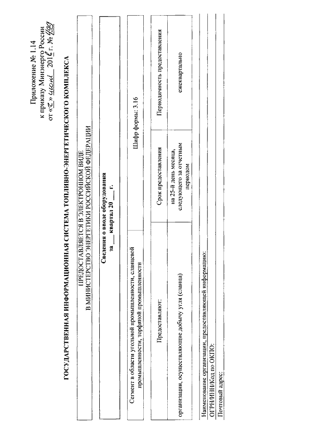 "ОБ УТВЕРЖДЕНИИ ФОРМ ПРЕДОСТАВЛЕНИЯ В ОБЯЗАТЕЛЬНОМ ПОРЯДКЕ ЮРИДИЧЕСКИМИ ЛИЦАМИ ИНФОРМАЦИИ ДЛЯ ВКЛЮЧЕНИЯ В СЕГМЕНТ В ОБЛАСТИ УГОЛЬНОЙ ПРОМЫШЛЕННОСТИ, СЛАНЦЕВОЙ ПРОМЫШЛЕННОСТИ, ТОРФЯНОЙ ПРОМЫШЛЕННОСТИ ГОСУДАРСТВЕННОЙ ИНФОРМАЦИОННОЙ СИСТЕМЫ ТОПЛИВНО - ЭНЕРГЕТИЧЕСКОГО КОМПЛЕКСА И ТРЕБОВАНИЙ К ЗАПОЛНЕНИЮ ЭТИХ ФОРМ"