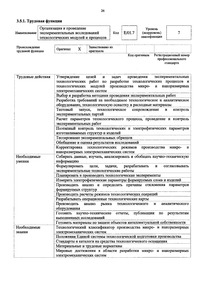 "ОБ УТВЕРЖДЕНИИ ПРОФЕССИОНАЛЬНОГО СТАНДАРТА "СПЕЦИАЛИСТ ПО ТЕХНОЛОГИИ ПРОИЗВОДСТВА МИКРО- И НАНОРАЗМЕРНЫХ ЭЛЕКТРОМЕХАНИЧЕСКИХ СИСТЕМ"