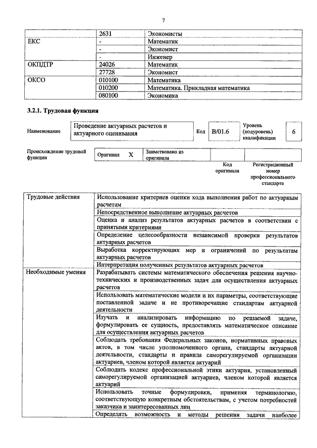 "ОБ УТВЕРЖДЕНИИ ПРОФЕССИОНАЛЬНОГО СТАНДАРТА "АКТУАРИЙ"
