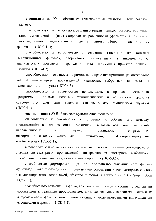 "ОБ УТВЕРЖДЕНИИ ФЕДЕРАЛЬНОГО ГОСУДАРСТВЕННОГО ОБРАЗОВАТЕЛЬНОГО СТАНДАРТА ВЫСШЕГО ОБРАЗОВАНИЯ ПО СПЕЦИАЛЬНОСТИ 55.05.01 РЕЖИССУРА КИНО И ТЕЛЕВИДЕНИЯ (УРОВЕНЬ СПЕЦИАЛИТЕТА)"