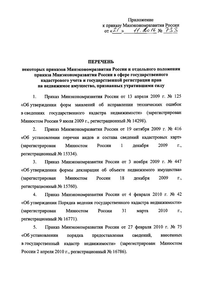 ПРИКАЗ Минэкономразвития РФ от 21.11.2016 N 733