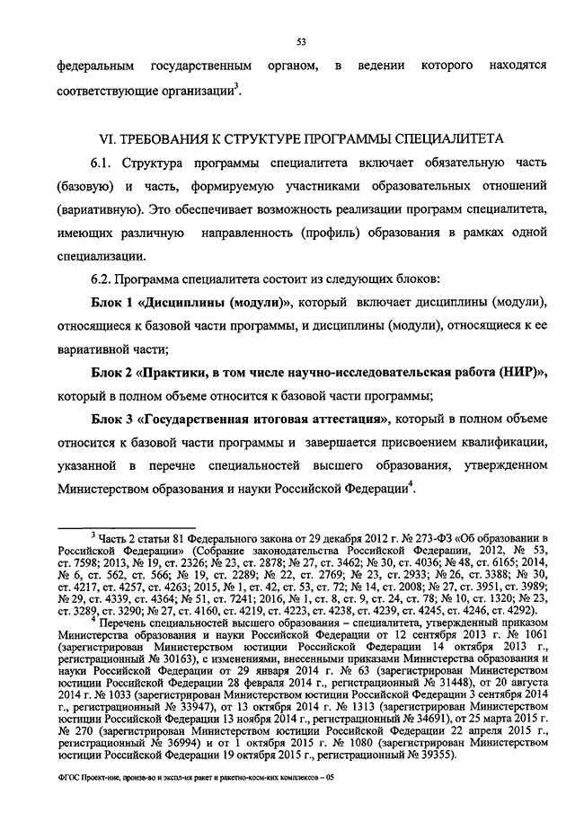 "ОБ УТВЕРЖДЕНИИ ФЕДЕРАЛЬНОГО ГОСУДАРСТВЕННОГО ОБРАЗОВАТЕЛЬНОГО СТАНДАРТА ВЫСШЕГО ОБРАЗОВАНИЯ ПО СПЕЦИАЛЬНОСТИ 24.05.01 ПРОЕКТИРОВАНИЕ, ПРОИЗВОДСТВО И ЭКСПЛУАТАЦИЯ РАКЕТ И РАКЕТНО - КОСМИЧЕСКИХ КОМПЛЕКСОВ (УРОВЕНЬ СПЕЦИАЛИТЕТА)"