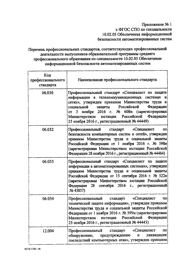 "ОБ УТВЕРЖДЕНИИ ФЕДЕРАЛЬНОГО ГОСУДАРСТВЕННОГО ОБРАЗОВАТЕЛЬНОГО СТАНДАРТА СРЕДНЕГО ПРОФЕССИОНАЛЬНОГО ОБРАЗОВАНИЯ ПО СПЕЦИАЛЬНОСТИ 10.02.05 ОБЕСПЕЧЕНИЕ ИНФОРМАЦИОННОЙ БЕЗОПАСНОСТИ АВТОМАТИЗИРОВАННЫХ СИСТЕМ"