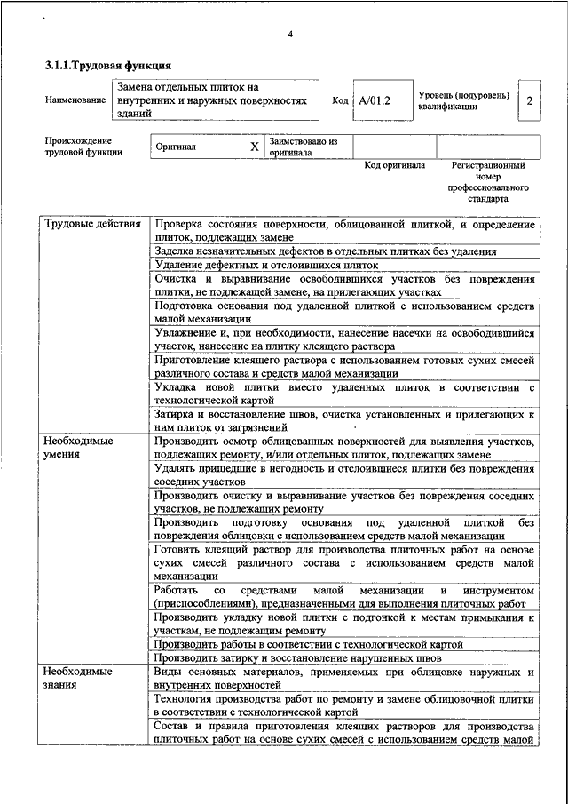 "ОБ УТВЕРЖДЕНИИ ПРОФЕССИОНАЛЬНОГО СТАНДАРТА "ПЛИТОЧНИК"
