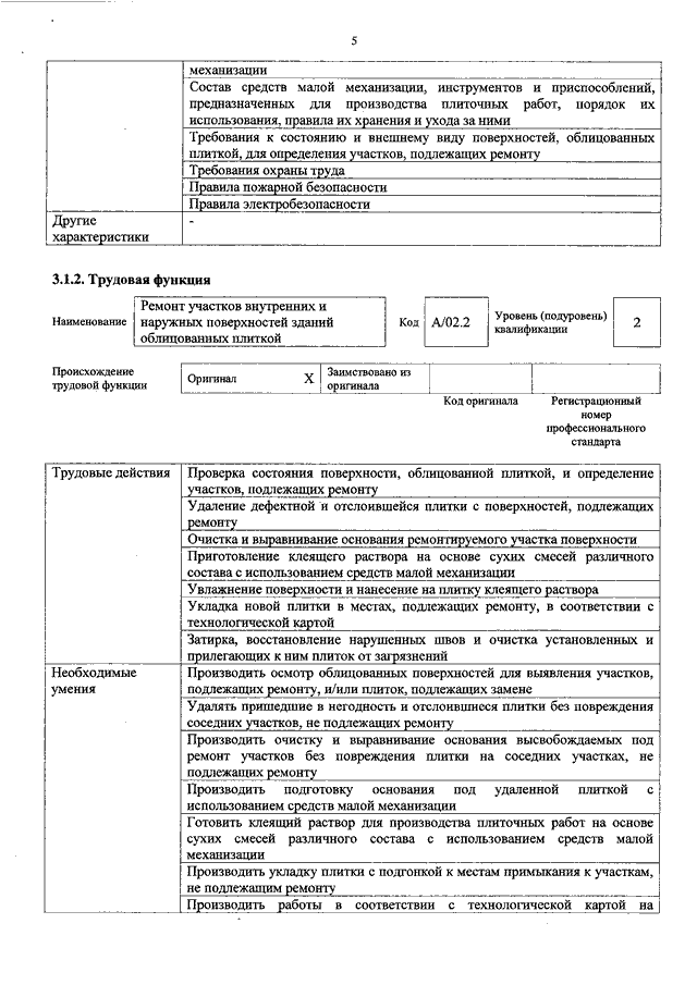"ОБ УТВЕРЖДЕНИИ ПРОФЕССИОНАЛЬНОГО СТАНДАРТА "ПЛИТОЧНИК"