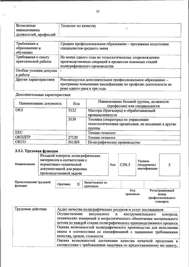 "ОБ УТВЕРЖДЕНИИ ПРОФЕССИОНАЛЬНОГО СТАНДАРТА "ТЕХНОЛОГ ПОЛИГРАФИЧЕСКОГО ПРОИЗВОДСТВА"