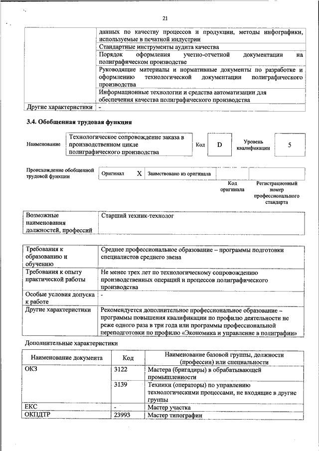 "ОБ УТВЕРЖДЕНИИ ПРОФЕССИОНАЛЬНОГО СТАНДАРТА "ТЕХНОЛОГ ПОЛИГРАФИЧЕСКОГО ПРОИЗВОДСТВА"