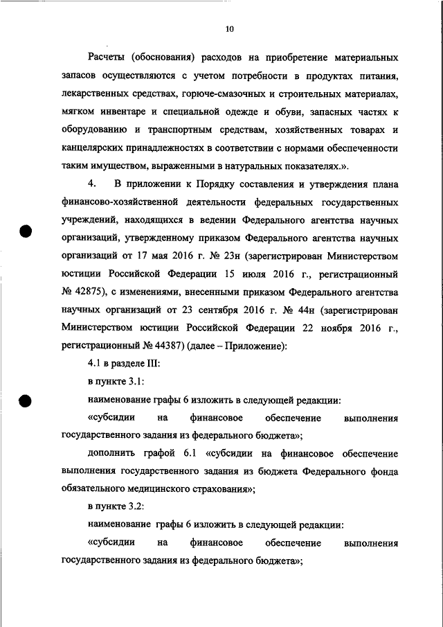 "О ВНЕСЕНИИ ИЗМЕНЕНИЙ В ПОРЯДОК СОСТАВЛЕНИЯ И УТВЕРЖДЕНИЯ ПЛАНА ФИНАНСОВО - ХОЗЯЙСТВЕННОЙ ДЕЯТЕЛЬНОСТИ ФЕДЕРАЛЬНЫХ ГОСУДАРСТВЕННЫХ УЧРЕЖДЕНИЙ, НАХОДЯЩИХСЯ В ВЕДЕНИИ ФЕДЕРАЛЬНОГО АГЕНТСТВА НАУЧНЫХ ОРГАНИЗАЦИЙ, УТВЕРЖДЕННЫЙ ПРИКАЗОМ ФЕДЕРАЛЬНОГО АГЕНТСТВА НАУЧНЫХ ОРГАНИЗАЦИЙ ОТ 17 МАЯ 2016 Г. N 23Н"