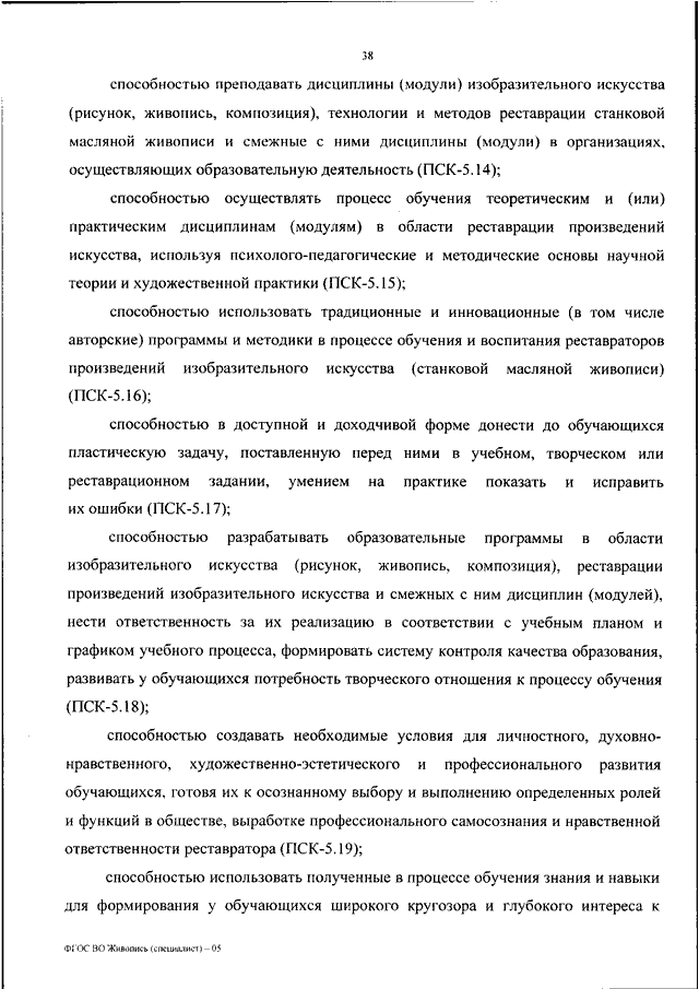 "ОБ УТВЕРЖДЕНИИ ФЕДЕРАЛЬНОГО ГОСУДАРСТВЕННОГО ОБРАЗОВАТЕЛЬНОГО СТАНДАРТА ВЫСШЕГО ОБРАЗОВАНИЯ ПО СПЕЦИАЛЬНОСТИ 54.05.02 ЖИВОПИСЬ (УРОВЕНЬ СПЕЦИАЛИТЕТА)"