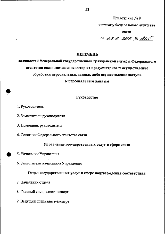 ПРИКАЗ Россвязи от 22.11.2016 N 255