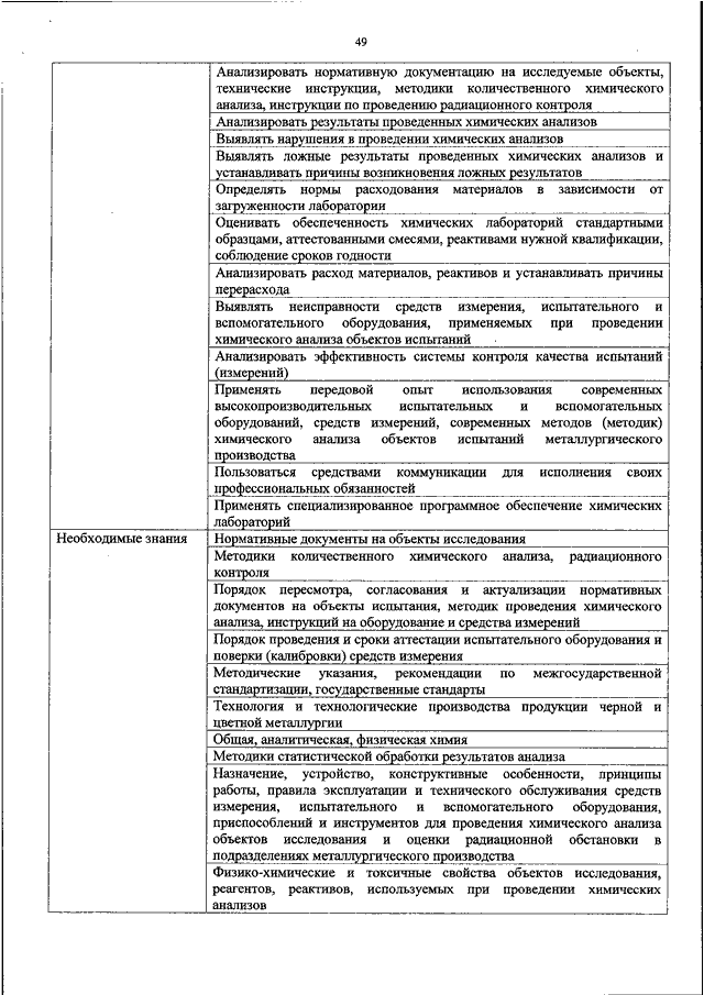 "ОБ УТВЕРЖДЕНИИ ПРОФЕССИОНАЛЬНОГО СТАНДАРТА "СПЕЦИАЛИСТ ХИМИЧЕСКОГО АНАЛИЗА В МЕТАЛЛУРГИИ"