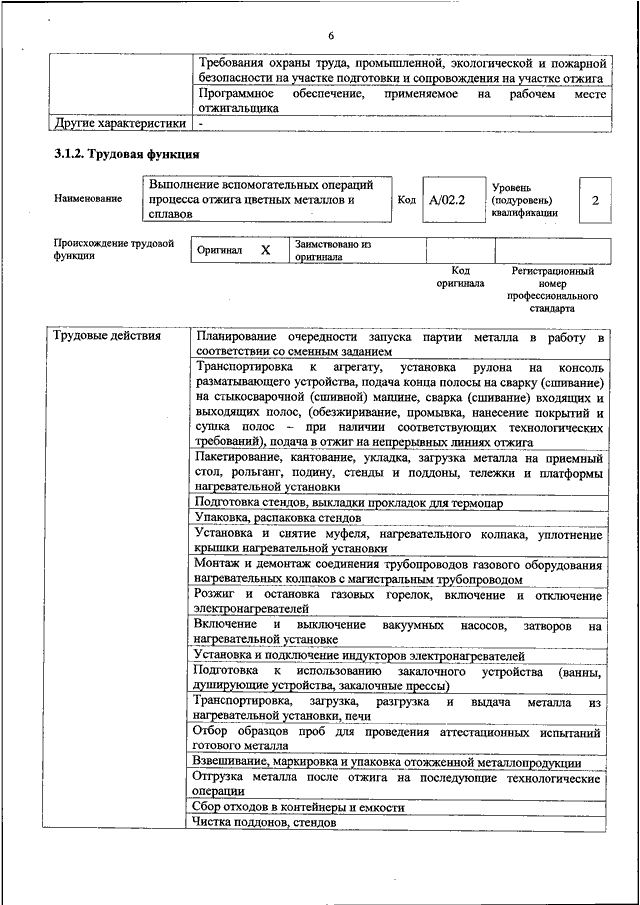 "ОБ УТВЕРЖДЕНИИ ПРОФЕССИОНАЛЬНОГО СТАНДАРТА "ОТЖИГАЛЬЩИК ЦВЕТНЫХ МЕТАЛЛОВ"