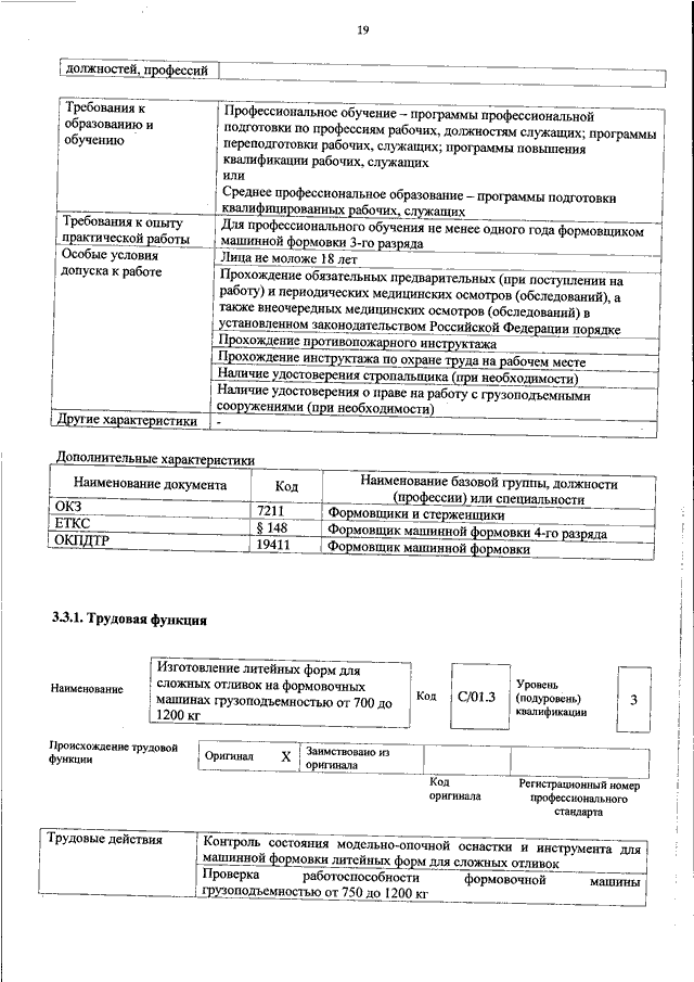 "ОБ УТВЕРЖДЕНИИ ПРОФЕССИОНАЛЬНОГО СТАНДАРТА "ФОРМОВЩИК МАШИННОЙ ФОРМОВКИ"