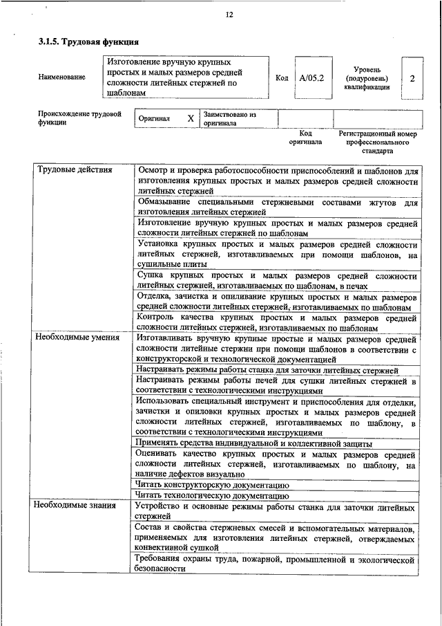 "ОБ УТВЕРЖДЕНИИ ПРОФЕССИОНАЛЬНОГО СТАНДАРТА "СТЕРЖЕНЩИК РУЧНОЙ ФОРМОВКИ"