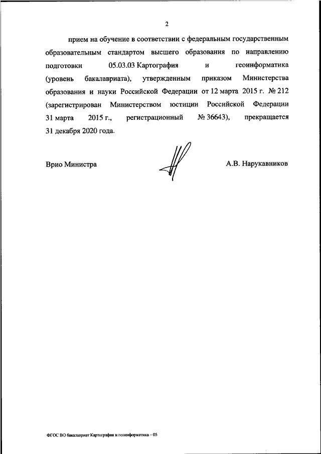 "ОБ УТВЕРЖДЕНИИ ФЕДЕРАЛЬНОГО ГОСУДАРСТВЕННОГО ОБРАЗОВАТЕЛЬНОГО СТАНДАРТА ВЫСШЕГО ОБРАЗОВАНИЯ - БАКАЛАВРИАТ ПО НАПРАВЛЕНИЮ ПОДГОТОВКИ 05.03.03 КАРТОГРАФИЯ И ГЕОИНФОРМАТИКА"