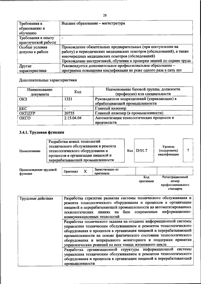 "ОБ УТВЕРЖДЕНИИ ПРОФЕССИОНАЛЬНОГО СТАНДАРТА "СПЕЦИАЛИСТ ПО ЭКСПЛУАТАЦИИ ТЕХНОЛОГИЧЕСКОГО ОБОРУДОВАНИЯ И ПРОЦЕССОВ ПИЩЕВОЙ И ПЕРЕРАБАТЫВАЮЩЕЙ ПРОМЫШЛЕННОСТИ"