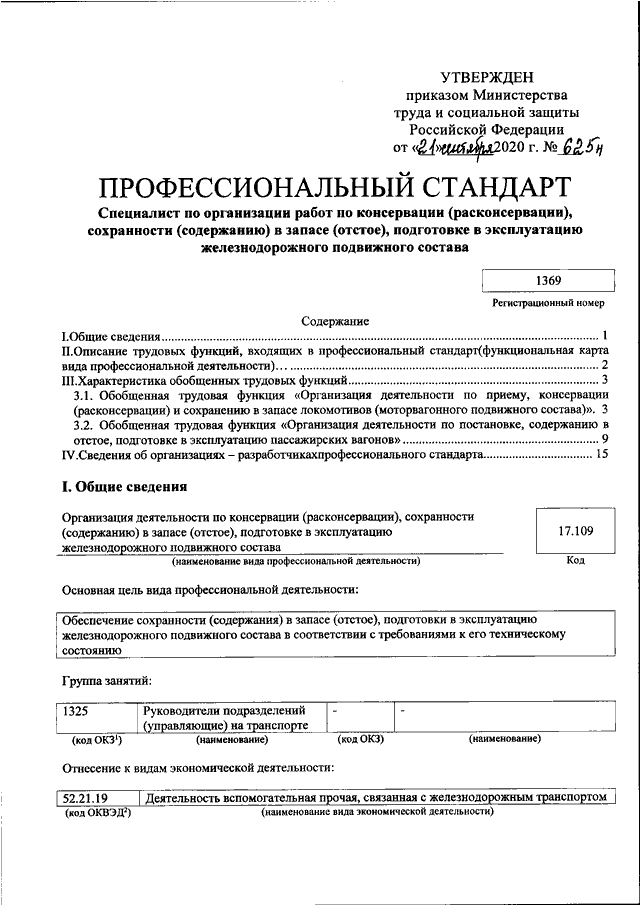 "ОБ УТВЕРЖДЕНИИ ПРОФЕССИОНАЛЬНОГО СТАНДАРТА "СПЕЦИАЛИСТ ПО ОРГАНИЗАЦИИ РАБОТ ПО КОНСЕРВАЦИИ (РАСКОНСЕРВАЦИИ), СОХРАННОСТИ (СОДЕРЖАНИЮ) В ЗАПАСЕ (ОТСТОЕ), ПОДГОТОВКЕ В ЭКСПЛУАТАЦИЮ ЖЕЛЕЗНОДОРОЖНОГО ПОДВИЖНОГО СОСТАВА"