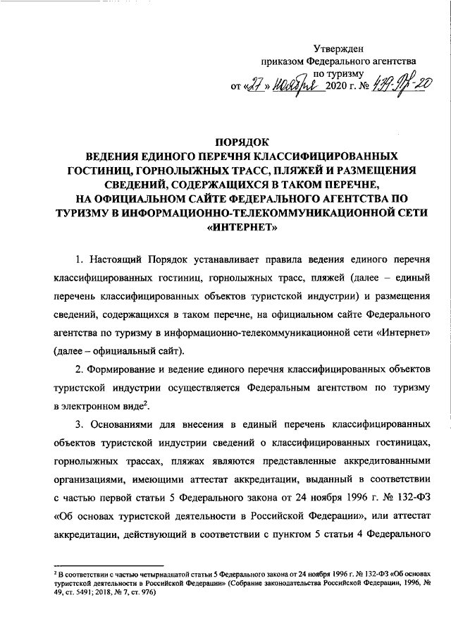 ПРИКАЗ Ростуризма от 27.11.2020 N 439-Пр-20