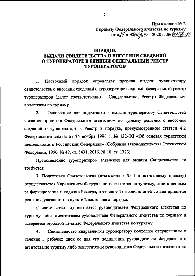 ПРИКАЗ Ростуризма от 27.11.2020 N 441-Пр-20