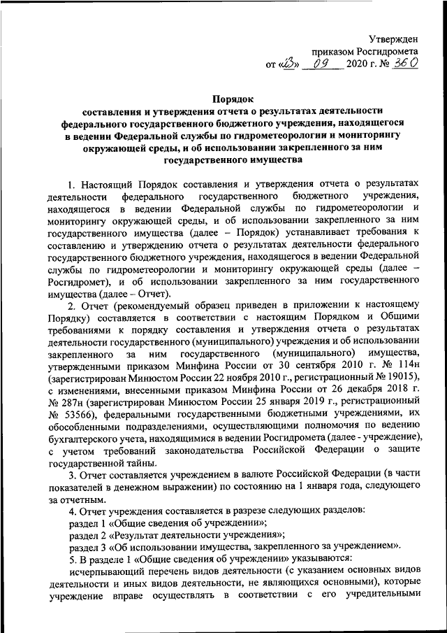 ПРИКАЗ Росгидромета от 23.09.2020 N 360