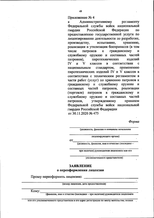 ПРИКАЗ Росгвардии от 30.11.2020 N 475