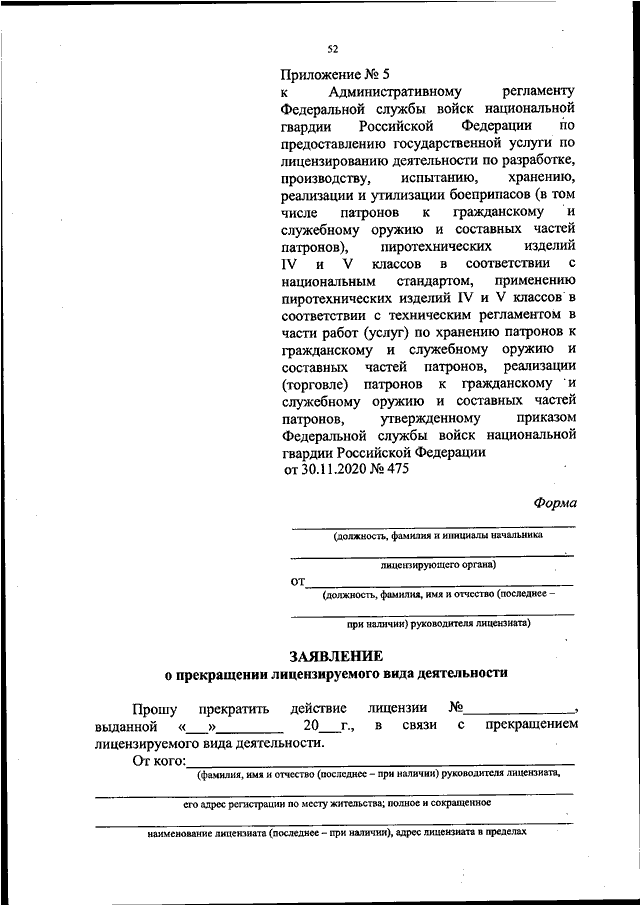 ПРИКАЗ Росгвардии от 30.11.2020 N 475
