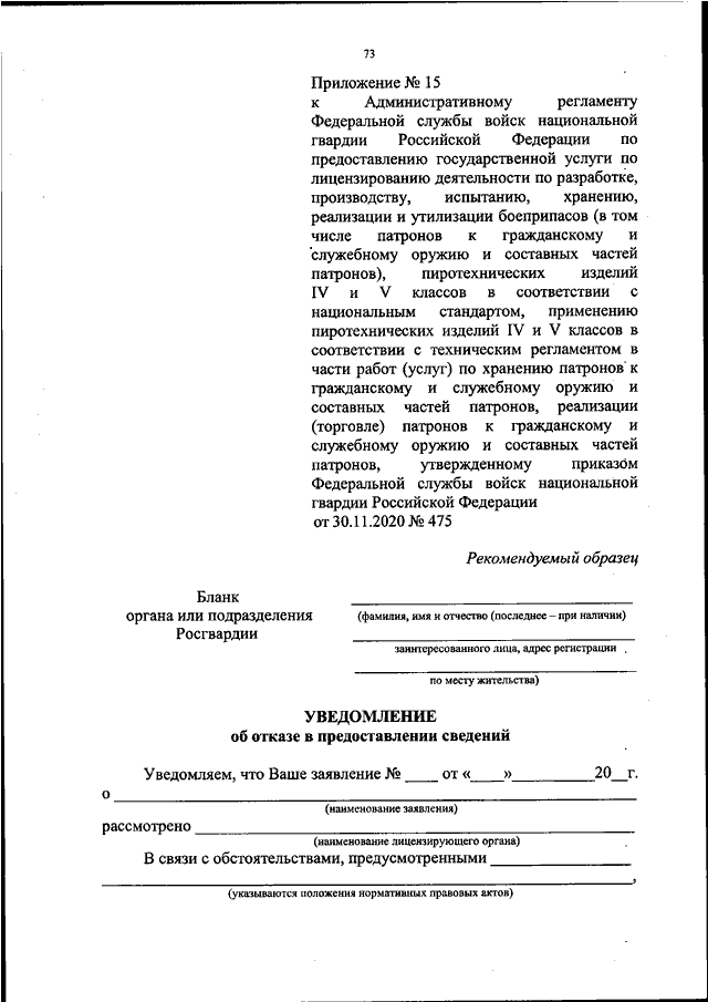 ПРИКАЗ Росгвардии от 30.11.2020 N 475