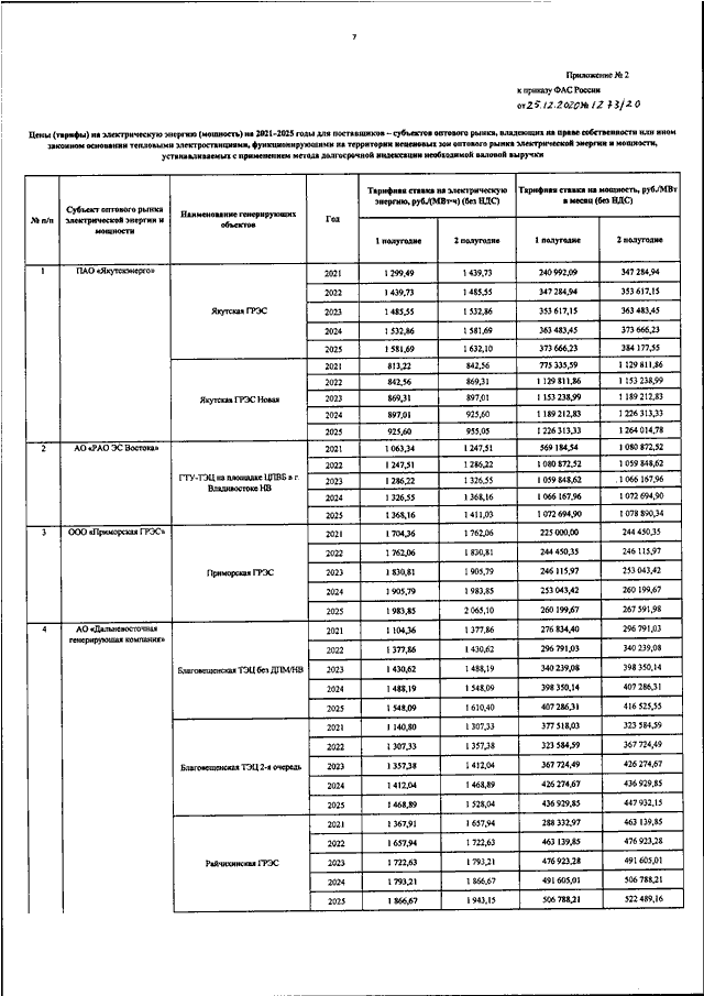 "ОБ УТВЕРЖДЕНИИ ЦЕН (ТАРИФОВ) НА ЭЛЕКТРИЧЕСКУЮ ЭНЕРГИЮ (МОЩНОСТЬ) ДЛЯ ПОСТАВЩИКОВ - СУБЪЕКТОВ ОПТОВОГО РЫНКА, ВЛАДЕЮЩИХ НА ПРАВЕ СОБСТВЕННОСТИ ИЛИ ИНОМ ЗАКОННОМ ОСНОВАНИИ ТЕПЛОВЫМИ ЭЛЕКТРОСТАНЦИЯМИ, ФУНКЦИОНИРУЮЩИМИ НА ТЕРРИТОРИИ НЕЦЕНОВЫХ ЗОН ОПТОВОГО РЫНКА ЭЛЕКТРИЧЕСКОЙ ЭНЕРГИИ И МОЩНОСТИ, УСТАНАВЛИВАЕМЫХ С ПРИМЕНЕНИЕМ МЕТОДА ДОЛГОСРОЧНОЙ ИНДЕКСАЦИИ НЕОБХОДИМОЙ ВАЛОВОЙ ВЫРУЧКИ НА 2021 - 2025 ГОДЫ"