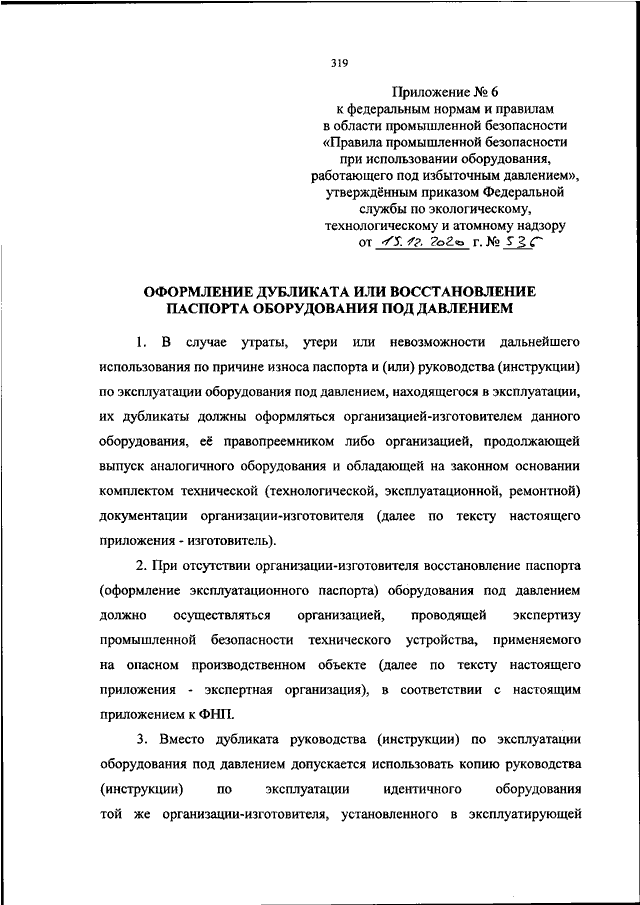 ПРИКАЗ Ростехнадзора от 15.12.2020 N 536